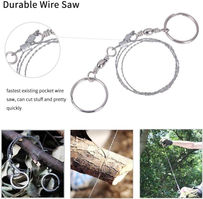 - [SURVIVAL TOOL]Stainless Steel Versatile Tool Card, Fire Starter, Compass, Emergency Whistle, Wire saw, Emergency Blanket. Which can Meet Your Different Needs! but also includes tactical preparedness survival tools for outdoor wilderness adventures activities like camping, boy scouts, hiking, fishing, hunting, backpacking, sports, boating or mountain biking.
